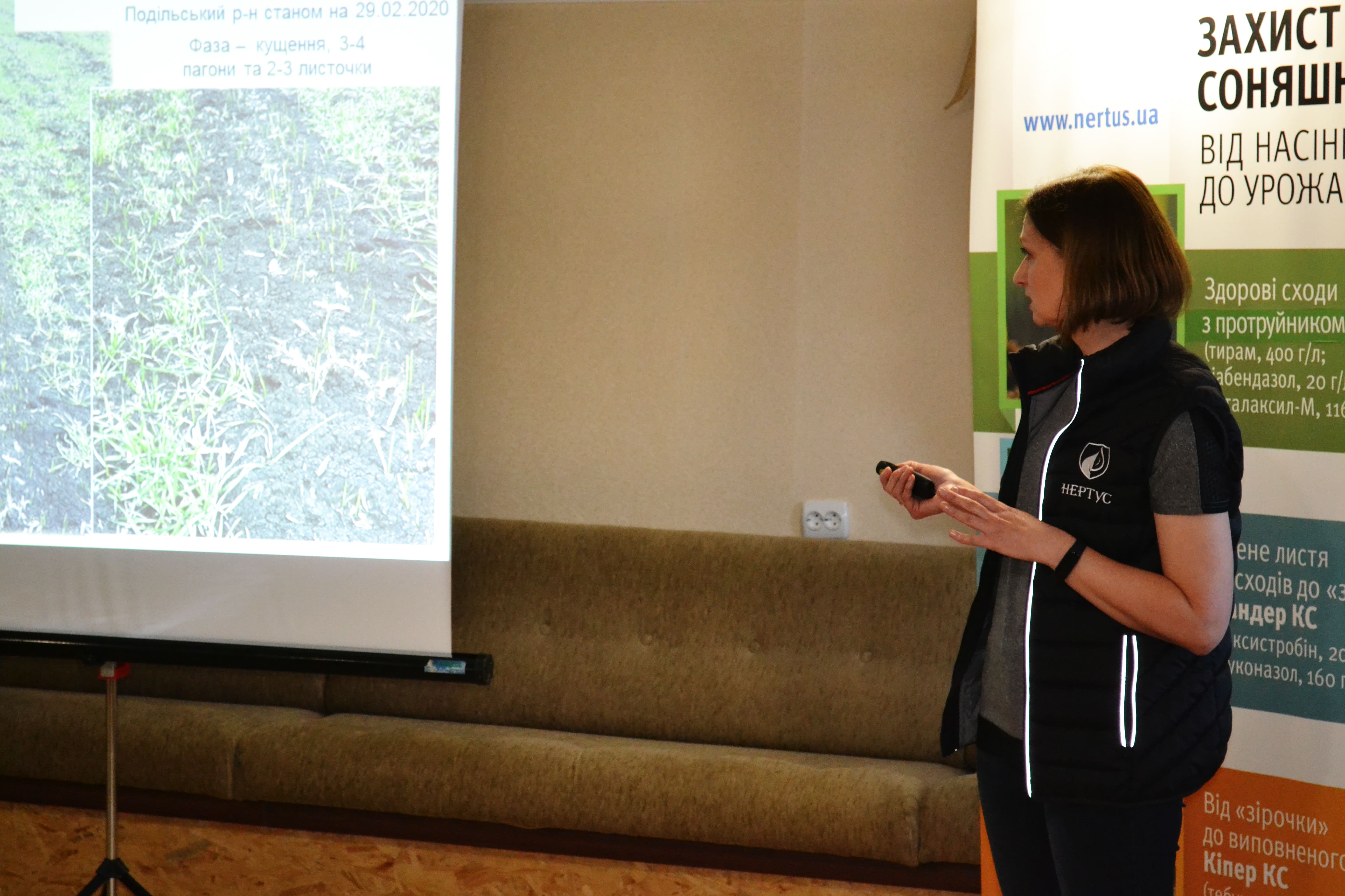 Ознайомили відвідувачів з системою захисту на соняшнику та ячміні новими препаратами Нертус: Фоліо та Конвой.