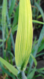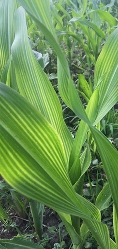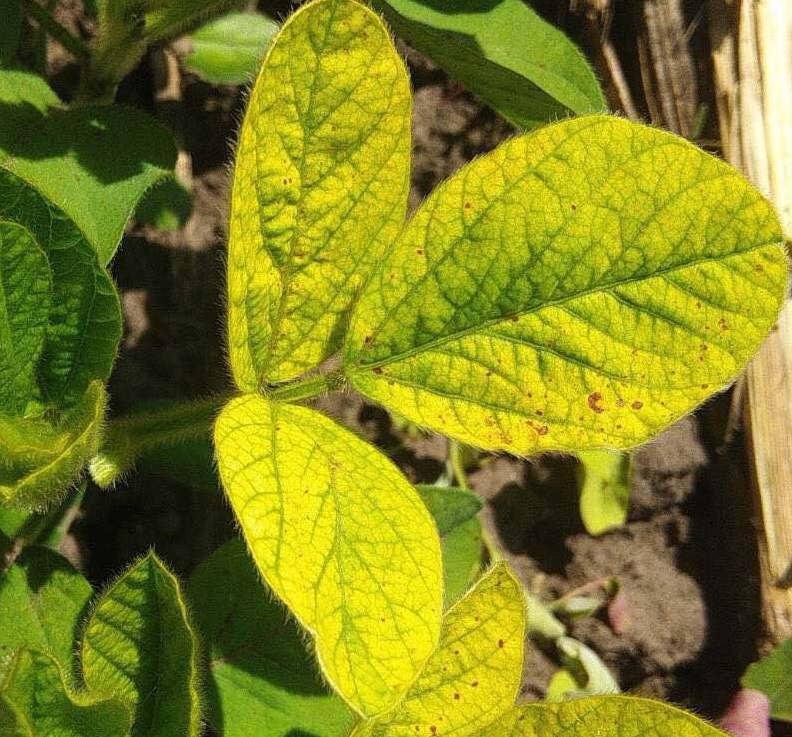 Дефіцит заліза: проявляється на молодих листках, листки жовтіють, стають блідими, між жилками з’являються жовті або білі смуги.