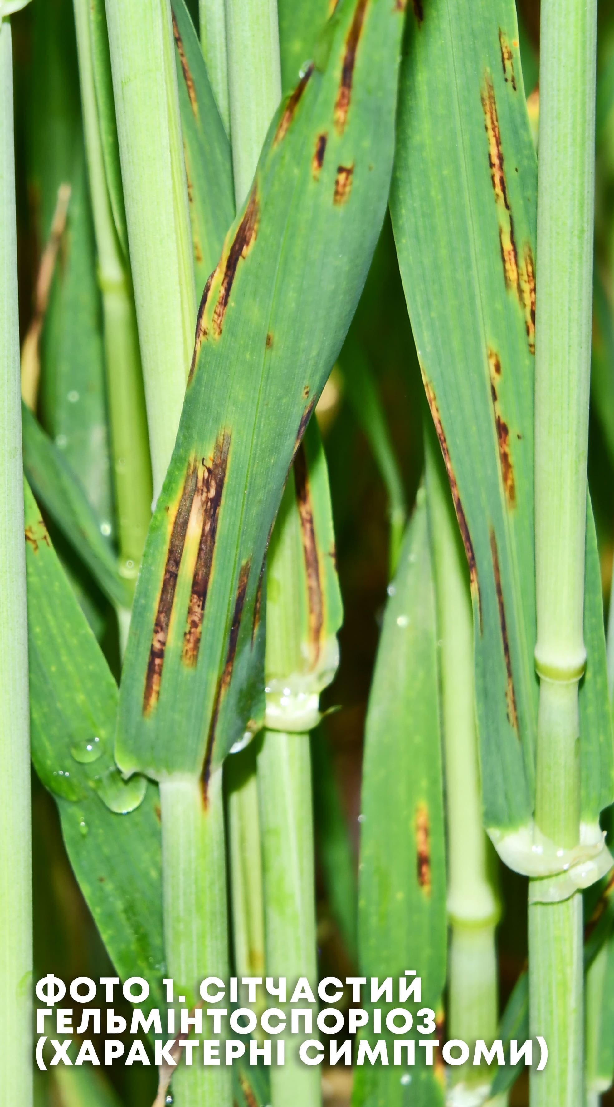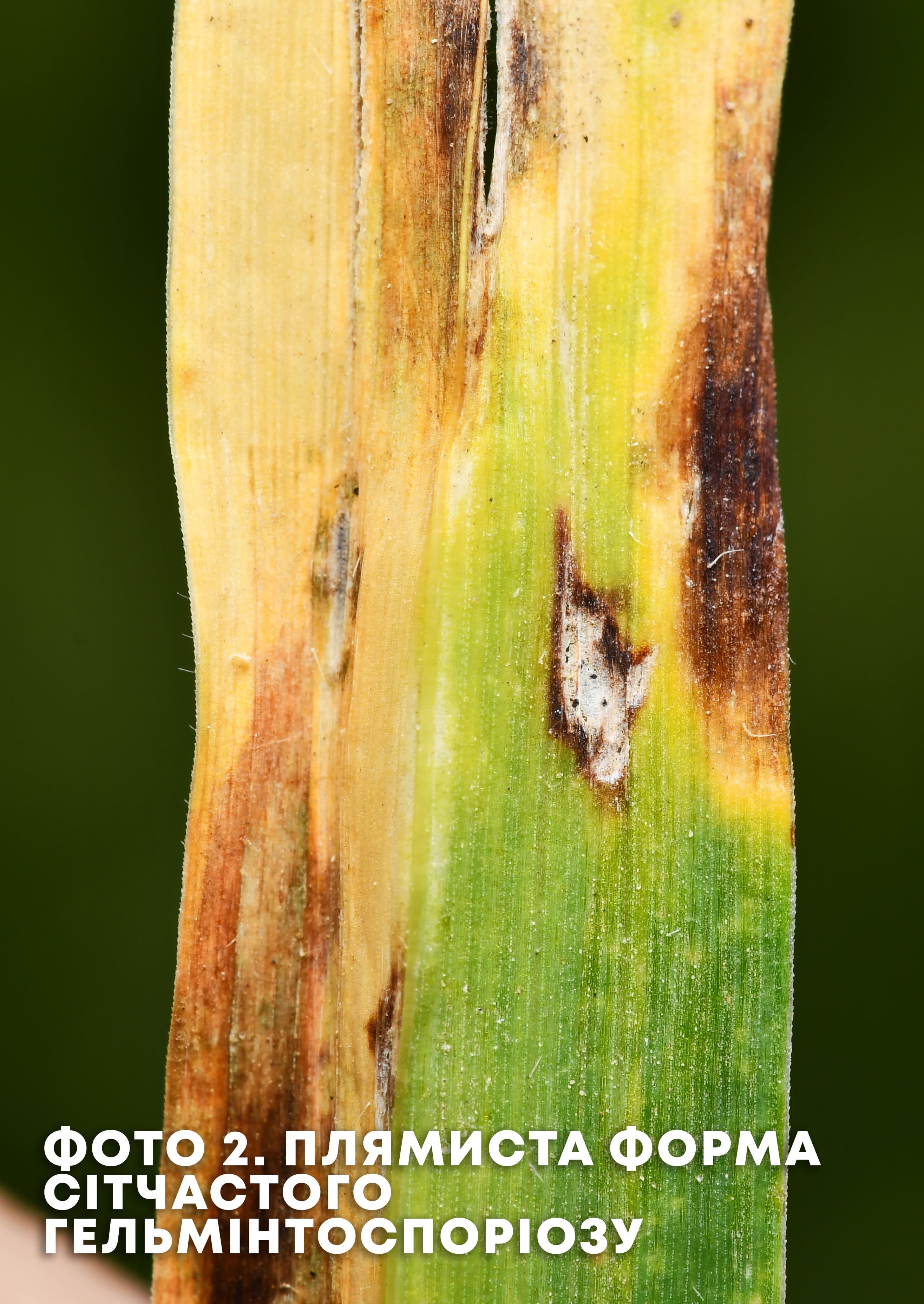 Сітчастий гельмінтоспоріоз проявляється у двох формах: характерна сітчаста (Pyrenophora teres f. teres) (фото 1) та плямиста (Pyrenophora teres f. maculate) (фото 2) – схожа на інші види плямистостей.